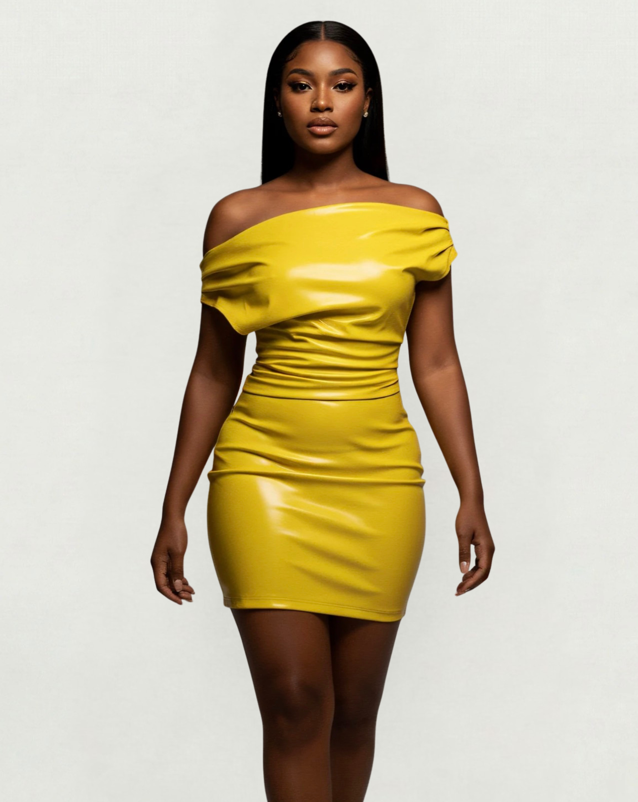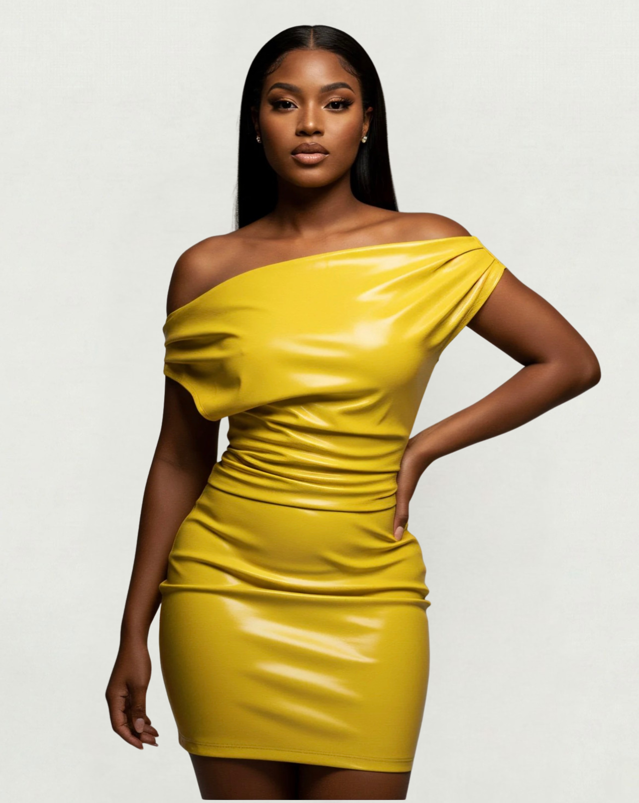 The Ures Drape Mini Dress is the perfect balance of elegance and edge. Designed with soft, fluid draping and a body-hugging fit, it enhances your curves while keeping it effortlessly chic. The mini length adds a bold , making it a statement piece from every angle.